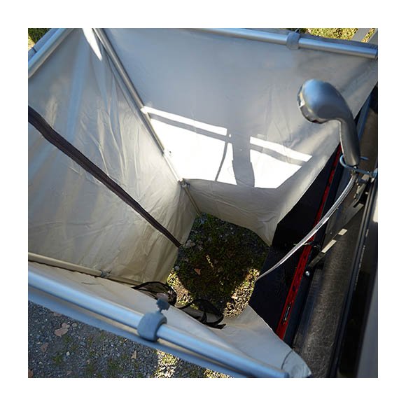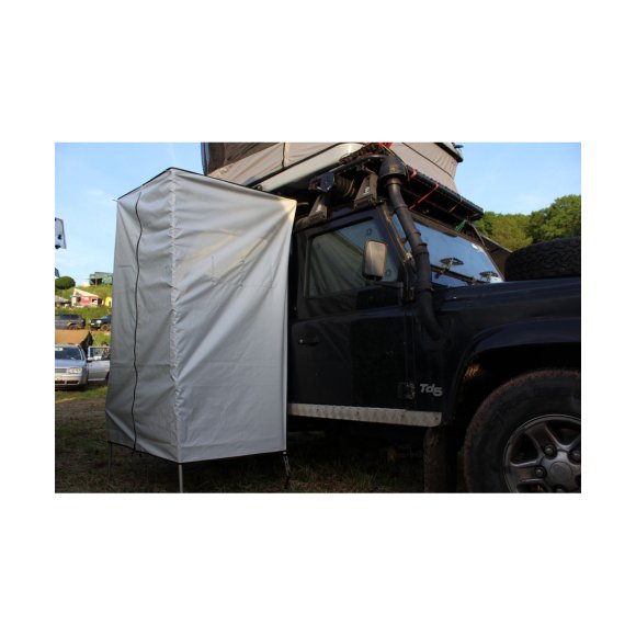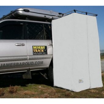 Douche universelle James Baroud. Compatible avec toutes barres de toit ou galerie. Fabriquée dans un tissu 100% étanche caoutchouté avec un cadre en aluminium : Robustesse et légèreté optimisées …