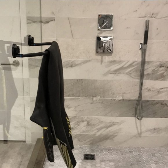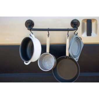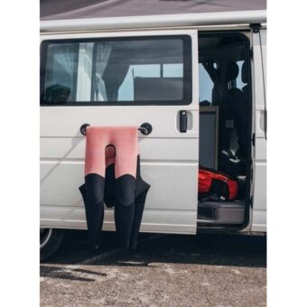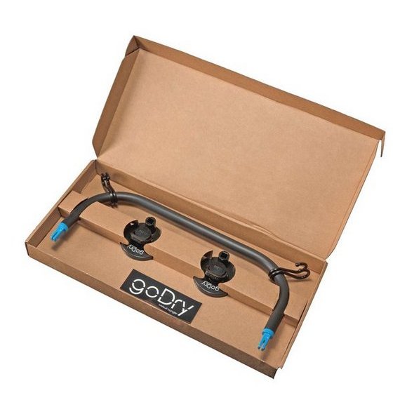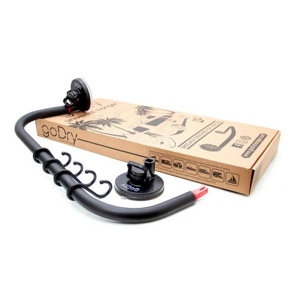 Séchoir – Etendoir universel Godry Hanger Le séchoir universel Godry Hanger est l’accessoire idéal pour étendre et faire sécher votre linge, serviettes, maillots de bains, combinaisons. Convient aux utilisations intérieures et extérieures, s’adapte à toute surface lisse non poreuse comme le métal, le verre, les carreaux, le plastique… parfait pour une utilisation à la maison, sur votre véhicule ou votre bateau. Les crochets fournis vous permettront également de suspendre vos accessoires de cuisine ou vos gants de toilettes, torchons ou encore vos gants, cagoules et chaussons de surf. Contenu de la boite : 2 ventouses 1 Barre 4 crochets plastique 1 sticker Godry Notice Caractéristiques : Dimensions handle : 45 x 21 cm Dimensions ventouses : 4,6 cm de haut et 9 cm de diamètre