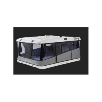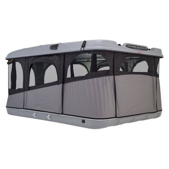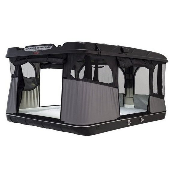 Tente de toit James Baroud Grand Raid, à coque rigide et ouverture plate, avec un rangement porte-bagage sur la coque supérieure. La Tente James Baroud Grand Raid s’ouvre à la même hauteur des deux côtés : 100 cm. Elle vous offrira ainsi une superbe vue et un panorama complet à 360°. Ce modèle se différencie par son porte-bagages sur la coque supérieure : Un espace sur l’arrière, équipé de points de fixation spécialement conçu pour mettre un bagage ou une roue de secours sur le toit de la tente. La coque supérieure et les vérins sont renforcés pour lever une charge de 25kg. Extracteur VMC solaire Ventilation VMC avec interrupteur on-off, silencieuse, alimentée par une batterie d’une autonomie de 24 heures et rechargée par un panneau solaire intégré. La VMC est très silencieuse et évacue la condensation et la chaleur accumulée. Elle évite la moisissure et l’humidité. Capacité : 11.6 m3/h La toile James Baroud qui équipe les tentes de la marque est unique et d’une qualité encore jamais inégalée : 6 couches d’aluminium rendent cette toile très isolante en été et en hiver, et reflètent les rayons du soleil pour éviter l’accumulation de chaleur à l’intérieur en été. UNIQUE : La toile et son traitement ne nécessitent aucun entretien ou réfection dans le temps ! Le design unique des toiles James Baroud, réduit au maximum la prise au vent et permet de résister à des rafales encore inégalées par les marques consœurs. L’aération se fait grâce à des ouïes latérale, cousues tendues sur la toile. L’air ne peut à aucun moment faire claquer le tissu sur la toile et évite ainsi toute gêne sonore la nuit. Ouverture – Fermeture L’ouverture de la tente se fait automatiquement en moins de 10 secondes au moyen de 4 vérins James Baroud. Monté sur rotules, actionnant des bras articulés protégés par une housse en toile. La fermeture est facile et rapide. Un élastique incorporé autour de la toile assure le retrait de celle-ci dans les coques pendant la fermeture. Toutes les tentes rigides sont équipées de : Echelle coulissante aluminium 246 cm VMC + Panneau solaire Lampe amovible à LED, avec chargeur allume cigare Housse de stockage en tissu Matelas haute densité 28Kg / m3 avec housse déhoussable et lavable 6 pattes de fixation rapides (Compatibles barres de toit de 30 à 85mm de largeur et 38mm de hauteur maximum. Incompatibles avec les barres de toits Rhinorack Heavy Duty) Filet de rangement intérieur Garantie constructeur : 5 ans Caractéristiques Poids : M et X 65 kg / XL 67kg Résistance de la tente au vent : 120 Km/h Dimensions Grand Raid M Dimensions intérieures : 140cm x 198cm x 100cm Dimensions du couchage : 140cm x 198cm Capacité : 2 personnes et 1 petit enfant Grand Raid X Dimensions intérieures : 160cm x 198cm x 100cm Dimensions du couchage : 160cm x 198cm Capacité : 2 personnes et 2 petits enfants Grand Raid XL Dimensions intérieures : 160cm x 224cm x 100cm Dimensions du couchage : 160cm x 224cm Capacité : jusqu’à 2 adultes et 2 enfants ou 3 adultes
