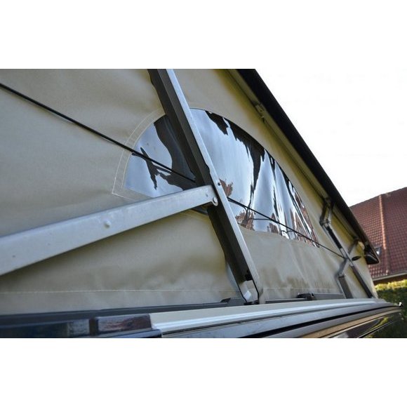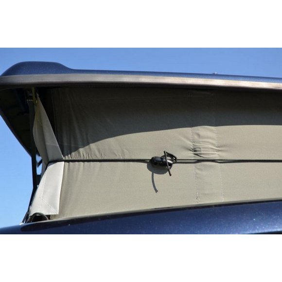 Le Bellow Bungee permet de maintenir la toile à l’intérieur lors de la fermeture du toit, et ainsi éviter qu’elle ne se coince et perse dans le mécanisme. Avec sa fixation unique il est fait pour peut rester installé en permanence, tout en pouvant facilement être retiré (1 minute). Il s’installe facilement, également lorsqu’on est seul, grâce au clips rapide dans lequel l’extrémité de l’élastique se fixe. Compatible avec tous les vans équipés de toits relevables à empattement court. Longueur de cordon : 3m80