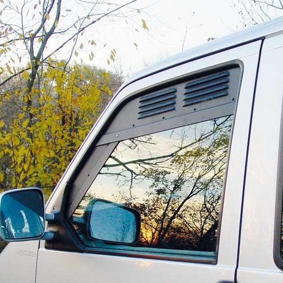 Kit de 2 aérateurs sécurisés avec moustiquaires intégrées pour les 2 vitres latérales de la cabine conducteur des Volkswagen T5 et T6 à partir de 2003. Matériau : aluminium peint en noir Aération et ventilation efficaces Moustiquaire intégrée Protection optimale contre la pluie Rapidité d’installation Démontables facilement et rapidement. Et ce, uniquement depuis l’intérieur du véhicule afin que vous dormiez en toute sécurité. Ouïes d’aération protégées par un rebord supérieur afin que l’air ne rentre pas dans le véhicule