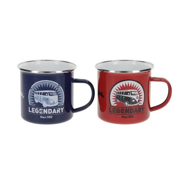 2 Mugs en émail VW T1 Légendaire Rouge / Bleu