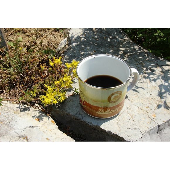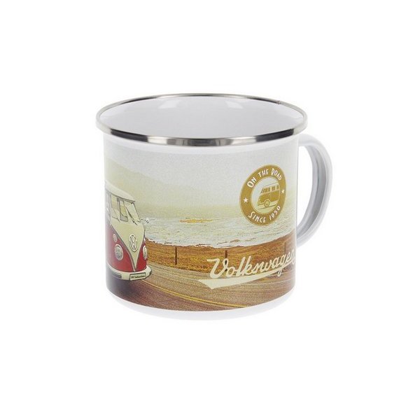 Tasse en acier émaillé 500 ml aux couleurs du mythique combi VW . Cette tasse en émail est incassable et parfaite pour vos voyage en van! Aux couleurs du légendaire bus VW T1. Emballé dans un joli coffret cadeau, ce mug est également le cadeau parfait pour les amoureux du combi!