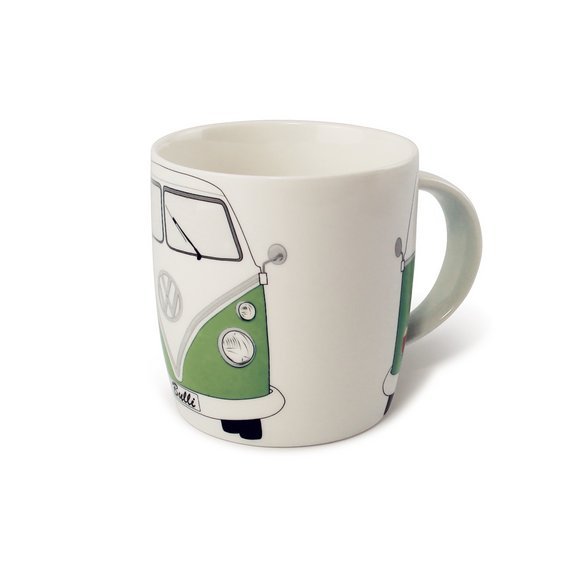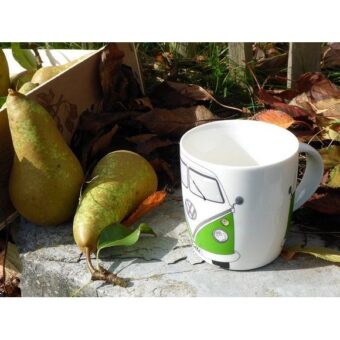 Tasse en porcelaine 370 ml aux couleurs du mythique combi VW vert. Cette tasse en porcelaine de haute qualité, représente l’avant et l’arrière du légendaire bus VW T1. Emballé dans un joli coffret cadeau, ce mug est également le cadeau parfait pour les amoureux du combi!