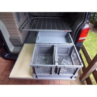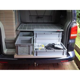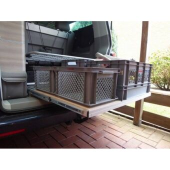 Le tiroir coulissant pour le coffre du Volkswagen California. Rangement optimal pour ne plus avoir à se pencher dans le coffre. Se fixant uniquement sur les rails du California, aucun perçage n’est …